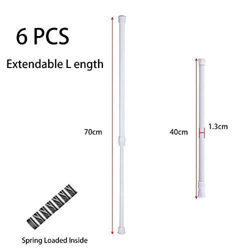 6 Pezzi Asta per Tenda,Asta di Tensione Telescopica a Molla,Bastone per Tenda Regolabile per Armadio,Cucina, Armadio,Libreria (40-70cm, Bianco)