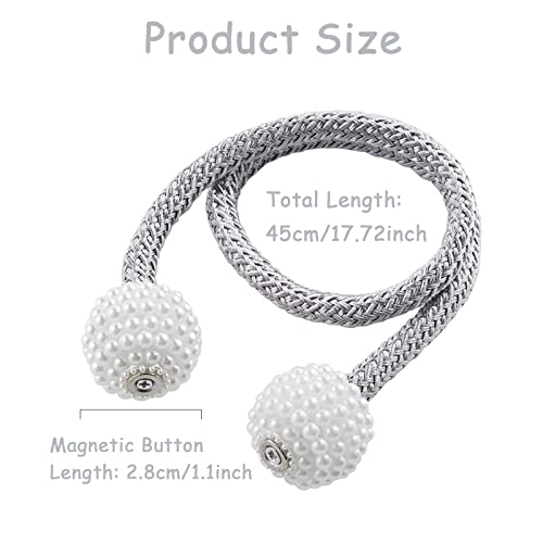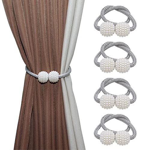 4 Pezzi Tende Fermatenda con Sfera di Perla, Fermacravatta Magnetica per Tende, Cravatta Magnetica Intrecciata, Tenda Tieback Eleganti per Tende per Camera da Letto Soggiorno Ufficio Decorazione