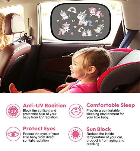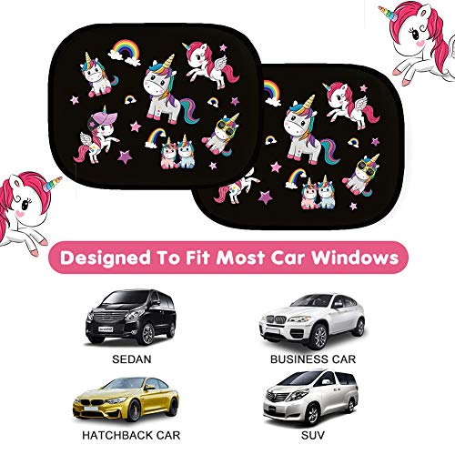2 Pezzi Tendine Parasole Auto Bambini, Parabrezza auto per bambini Baby Pet raggi UV/Protezione solare, Nero Parasole per finestrini laterali auto accessori con autoadesivo adhesive film (Unicorn)