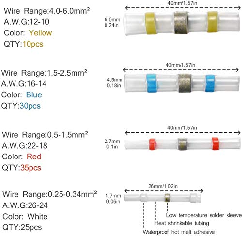 1. Compatibile con tutti gli standard europei: tasso di restringimento 2: 1, 4 colori / 4 dimensioni di connettori per filo di saldatura - 100 pz.