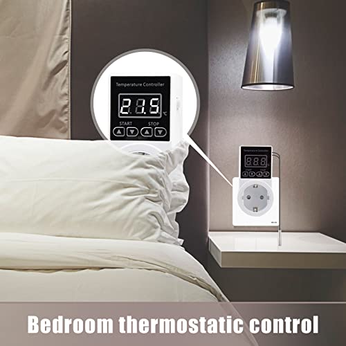 Facile da Usare: Presa per termostato digitale Nessun cavo richiesto, basta collegare il dispositivo a questa presa per termostato del regolatore di temperatura e impostare i parametri, funzionerà come programmato. Basta collegarlo e selezionare il sistema di riscaldamento/raffreddamento che funziona normalmente. Non è richiesta alcuna