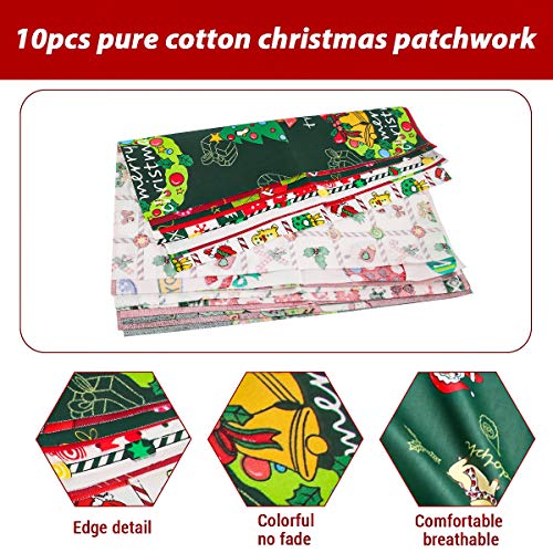 10 Pezzi Tessuti Natalizi, Tessuto a Tema Natalizio, Tessuto di Cotone Natale, Tessuto in Cotone Tema Natalizio, Tessuto Stampato Cucito Natalizio Artigianato Fai Da Te, Decorazioni, 10 Stili (B-25cm)
