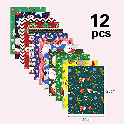 ⛄ [Taglia del vestito patchwork] 12 pezzi di patchwork di cotone natalizio con diversi colori e motivi, ciascuno 20 cm x 25 cm, quantità sufficiente e dimensioni adeguate, possono soddisfare le tue esigenze di cucito natalizio e l'uso quotidiano.