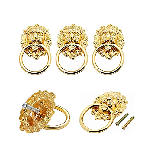 8 Pezzi Testa Leone Pomello Mobili, Maniglie per Cassetti con Testa di Leone, Pomelli Maniglioni Testa Leone, con Viti, Per Maniglie Delle Porte Dell'armadio e Maniglie dei Cassetti (Dorate)