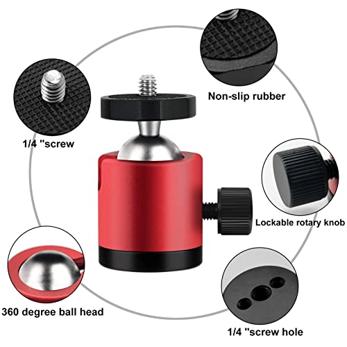 2 Pezzi Testa a Sfera,Testa Sferica,Mini testa a sfera,Testa a sfera mini a 360°,per Treppiede/DSLR (Rosso)