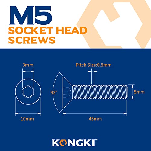 30 pezzi Viti a testa svasata M5 x 45mm, con esagono incassato in acciaio al carbonio,Viti a brugola, filettatura completa nera