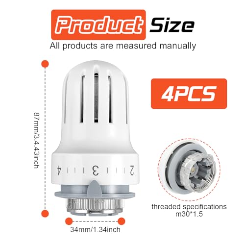 Alta qualità: la testa termostatica è realizzata in materiale di alta qualità, durevole e pratica da usare. La pregevole fattura e buone prestazioni. Facile da usare con una lunga durata. Il termostato di riscaldamento è durevole.
