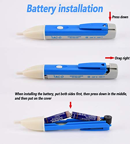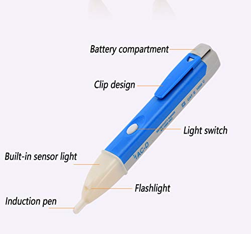 Test di tensione senza contatto: il tester di tensione consente il test di tensione senza contatto da 90 V a 1000 V CA (NON testare MAI la tensione che è superiore a 1000 V). Basta tenere il dispositivo su una presa, un portalampada o un cavo isolato.