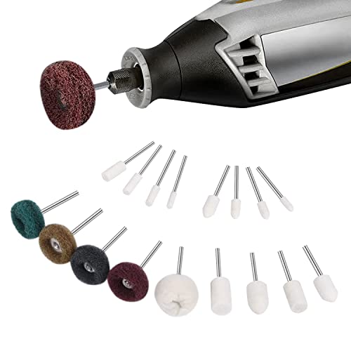 【Set di dischi per lucidatura】 Il set contiene: 12 testine di lucidatura in feltro di lana (4 mm/5 mm/6 mm/8 mm/10 mm/12 mm cilindriche e appuntite), 16 spugne abrasive per lucidatura (# 120/# 180/# 320/# 400 grana x 4 pezzi), 8 spazzole per lucidatura in feltro di lana, 36 pezzi in totale, per le vostre diverse esigenze. da soddisfare i