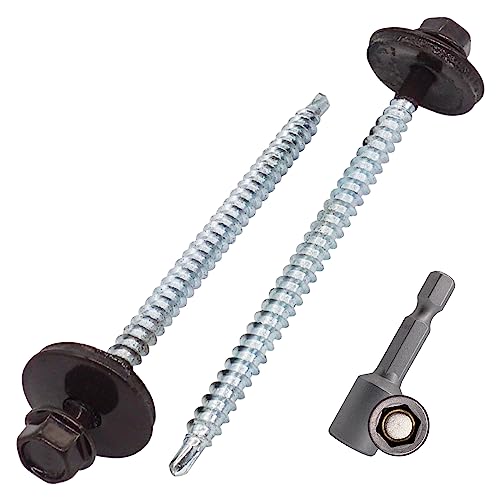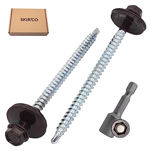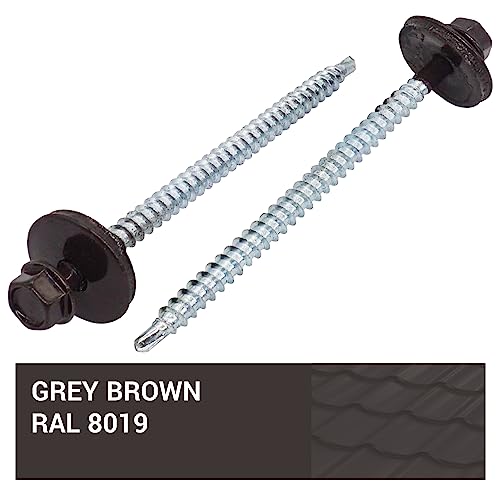 SKIR'CO (100 pezzi) Viti per tetti verniciate 4,8 x 80 mm, testa esagonale, viti autoperforanti con rondelle EPDM (marrone grigio, RAL 8019)