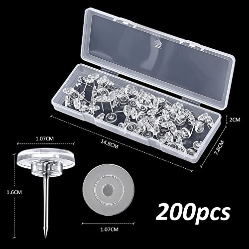 200 pezzi di thumbtack trasparenti, con una scatola di plastica, thumbtack decorativi, chiodi di plastica della cerniera della testa piatta, thumbtack rotondi, utilizzati per artigianato fai da te