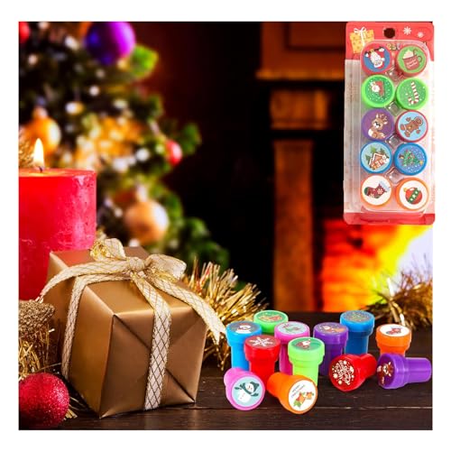 【Perfetto regalo】Questi timbri possono essere usati a casa o a scuola materna per fare carta regalo, fare cartolina di auguri di Natale, ecc. Tutti timbrini sono confezinati in una trasparente scatola, essendo un ottimo regalo di natale per i bambini.