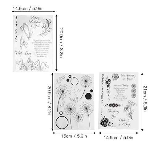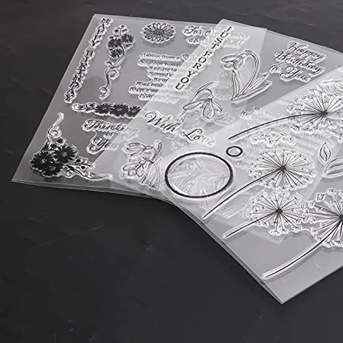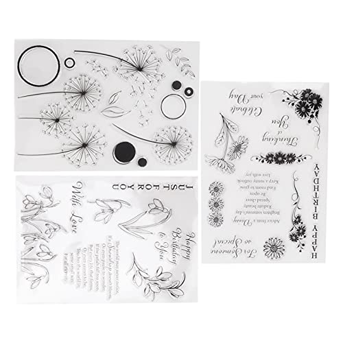 3 Pezzi Timbri Trasparenti Dente di Leone, Timbro Fiore Timbro in Silicone Creazione di Carte Francobolli per Artigianato Journaling Scrapbooking Creazione di Carte Decorazione