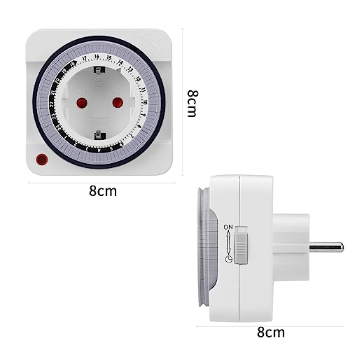 2 Pezzi - Timer da Giorno Meccanico, Presa con Timer 16A 3600W, Timer Meccanico di 15 Minuti - 24 Ore Regolabile Presa Timer Meccanico AC 230V [Bianco]