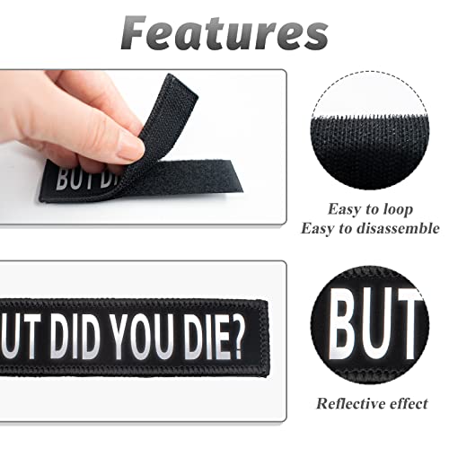 2 Pezzi BUT DID YOU DIE Toppa Riflettente Patch rimovibile Applique Fastener Patches Piccoli Adesivi con Gancio e Loop per Divertente Tattico Abbigliamento Zaini Cappelli Patch Decorativa 10 x 2,5 cm