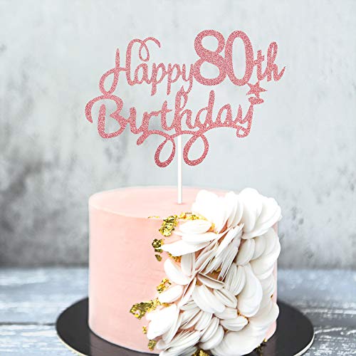 3 Pezzi Topper di Compleanno 80 ° per Torta Plettri Topper di Buon Compleanno 80 ° per Torta Cupcake Glitter Decorazione di Torta per Feste del 80 ° Compleanno Decorazione di Torta, Oro Rosa