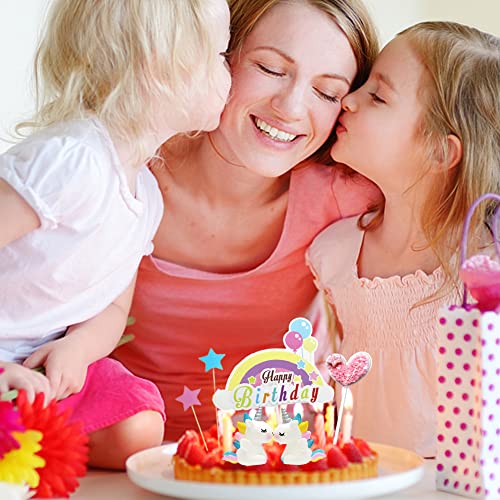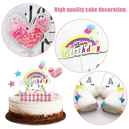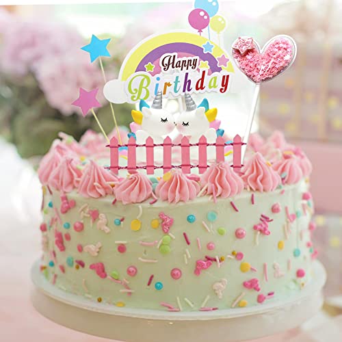 7 pezzi Cake Topper Decorazioni per torte Compleanno unicorno Mongolfiera Arcobaleno Buon compleanno Cuore Stella Recinzione Kit decorazioni per torta unicorno per bambini Compleanno Baby Shower Festa