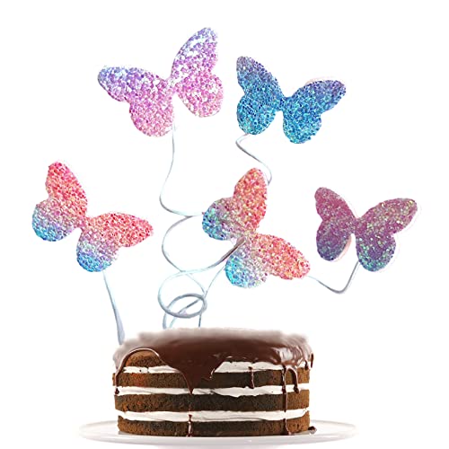 5 Pezzi Cake Topper Farfalla,Torta con Farfalle Glitter Toppers,Torte Decorazioni per Feste di Compleanno,Matrimonio,Baby Shower (Blu)