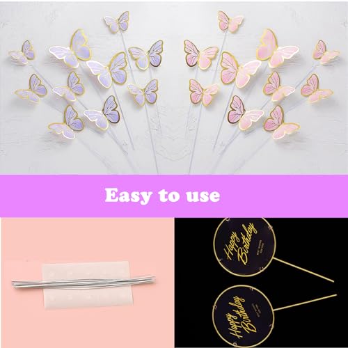 Cake Topper: queste farfalle uniche deco compleanno possono servire come accessori delicati per torte, cupcakes, gelati, formaggi, frutta o altri piatti che si desidera decorare, ideale per feste di compleanno, baby shower, feste o altri eventi.