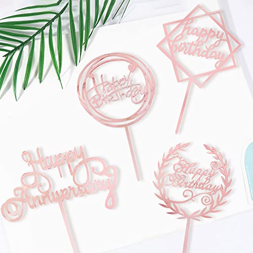 4 Pezzi Topper per Torta di Buon Compleanno, Topper per Torta di Compleanno in Acrilico Glitter Topper per Torta di Buon Compleanno Decorazioni per Torte Forniture per Vari Compleanni (4 Stili)