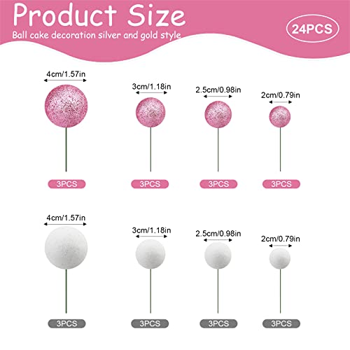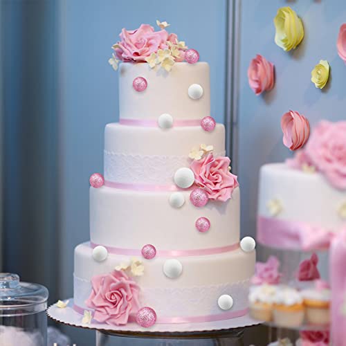 24 Pezzi Topper Torta Palloncini Rotondi in Schiuma Carino Torta Sfera in Schiuma Brillantini Topper per Anniversario di Matrimonio, Compleanno (Rosa e bianco)