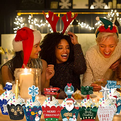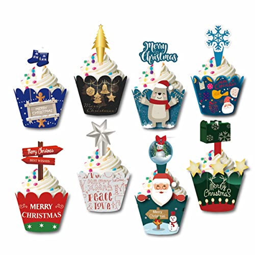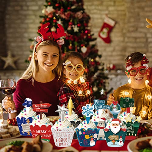 48 Pezzi Topper per Torte di Natale Cupcake Wrapper per Torta di Natale, Cupcake per feste di compleanno Bambini Feste Compleanno Matrimoni Torte Caramelle Decorazioni
