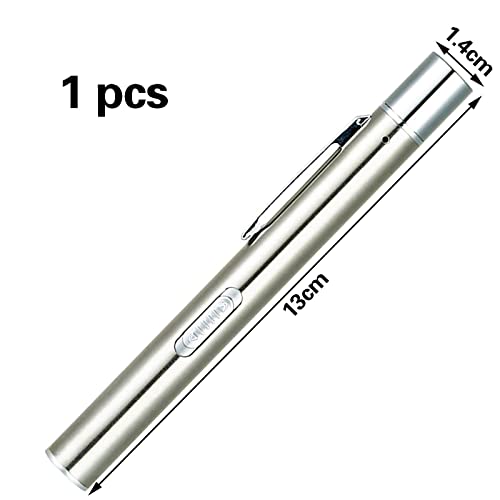 1 Pezzi Torcia Penna,Torcia Penna LED Riutilizzabile,Luce diagnostica,Penlight Lampada Diagnostica con Clip,per Infermieri, Studenti,Medici(argentato)