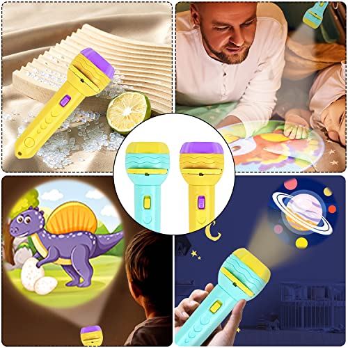 2 pezzi torcia proiettore bambini - dinosauro giocattoli regali per bambini 2 - 8 anni ragazzi ragazze, torcia per bambini con 2 proiettori e 80 modelli di animali, frutti numeri luminosi