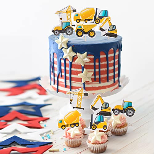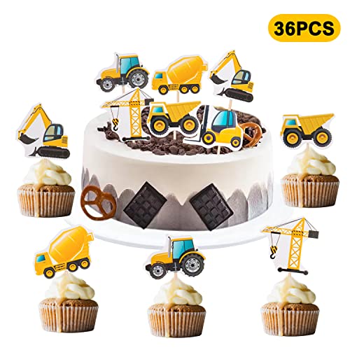 36 pezzi torta Deco cantiere torta Muffin Deco compleanno ragazzo, torta Topper camion escavatore Cupcake Topper torta Stick Cake per 1.2.3.4.5. 6. anni bambini bambino ragazzi decorazione di partito