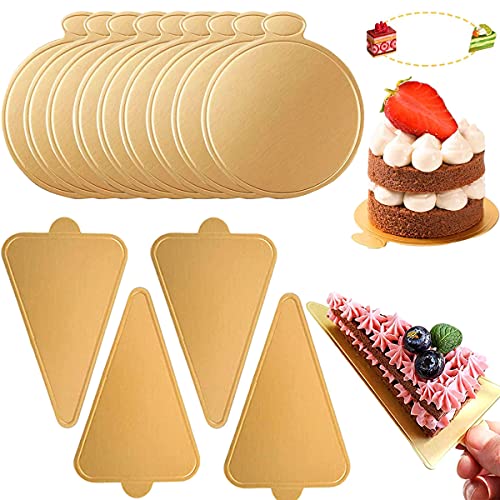 YWQQ 100 Pezzi Basi per Torta,Triangolo Mousse Torta Bordo di Carta,Cup Cake Dessert Display Vassoio,Base in Cartone, Base per Decorare Torte,per Decorazione Torte, Matrimoni,Feste di Compleanno(Oro)