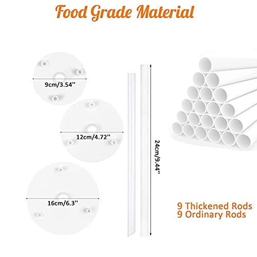 【Confezione inclusa】 La confezione contiene 3 piatti per torta rotondi con diametro di 9 cm, 12 cm e 16 cm e 18 supporti per torta in plastica (9 addensati e 9 normali), quantità sufficiente per soddisfare le tue esigenze di preparazione e impilamento di torte a più livelli.