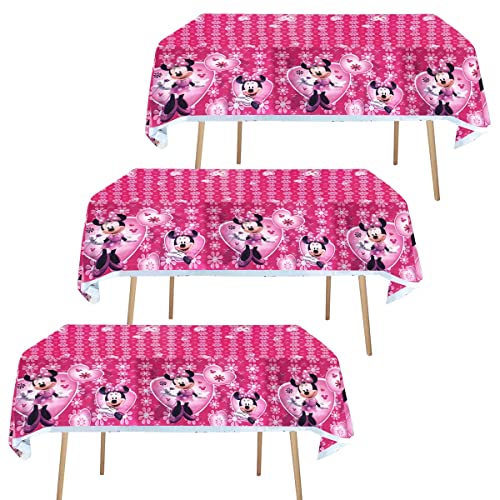 3 pezzi tovaglia rosa con topo Tovaglia per feste di compleanno per topi Compleanno per ragazze Decorazioni per feste baby shower Tovaglia in plastica per topi