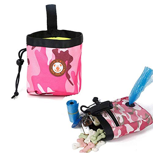 2 pezzi Pet Training Bag Dog Snacks Pocket con built-in Poop Bag Dispenser Pet Giocattoli & Kibble Treat Pouch per viaggio o uso all'aperto