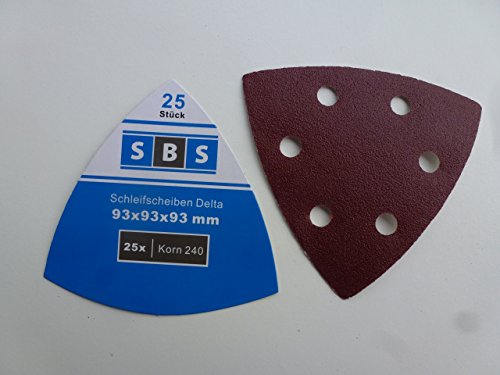 100 pezzi Triangoli abrasiva Velcro 93 X 93 X 93 mm grano 240 per levigatrici a delta 6 foro