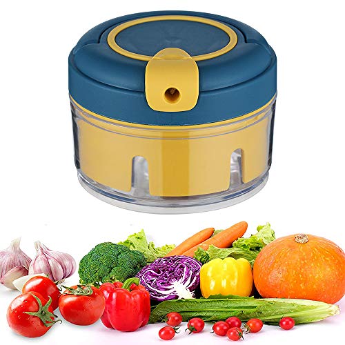1 Pezzi ABS Tritatutto Manuale, Tritatutto Multifunzione Cucina, Tritatutto Verdure, Tritatutto Aglio, Tritatutto Manuale In Acciaio Inox, per Insalata, Aglio, Cipolla, Alle Erbe (Giallo Blu)