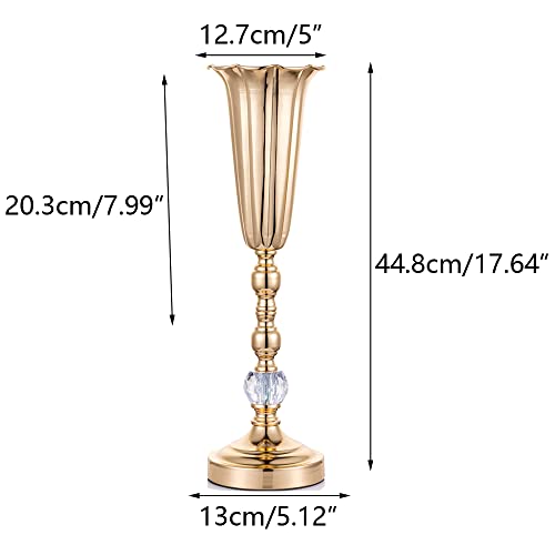 10 Pezzi Vaso da Tromba in Metallo con Perline di Cristallo, Centrotavola Decorativo da Tavolo, 44.8cm di Altezza Composizioni di Fiori Artificiali per la Festa di Anniversario Navata Decorazione
