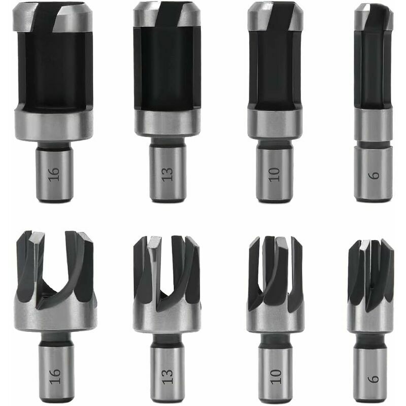 Dimensioni assortite: questo set include 4 punte per trapano a cono e 4 punte per trapano ad artiglio per soddisfare le tue esigenze lavorative quotidiane. Ogni stampo ha quattro dimensioni, 1/4, 3/8, 1/2, 5/8 (6 mm/10 mm/13 mm/16 mm). Diametro asta: circa 9,5 mm. Acciaio al carbonio di alta qualità: il set di taglierine per tasselli in legno è realizzato in acciaio al carbonio, che è durevole e anticorrosivo, ad alta precisione, ad alta resistenza e con un superficie liscia. Caratteristiche pratiche: i punzoni a botte a 4 denti fungono da tasselli conici per i tagliatori di ripieno, mentre i punzoni standard vengono utilizzati per rimuovere le imperfezioni del legno. Ampie applicazioni: adatti per banco e trapani a mano, si consiglia di utilizzare trapani da banco per un funzionamento più stabile e una migliore efficienza del lavoro. Nota: la velocità non dovrebbe essere troppo elevata, poiché è facile causare fumo, ustioni, ecc. < br> Specifiche: Materiale: acciaio al carbonio Tipo