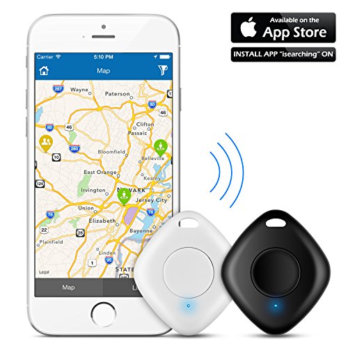 2 Pezzi Mini trova chiavi, RebirthTree Bluetooth GPS Anti-perso Telefono Finder Key Finder con Telecomando della Fotocamera per Chiavi/Animale Domestico/Portafogli/Cellulare (iPhone 7/8 e più, Bianco/Nero)