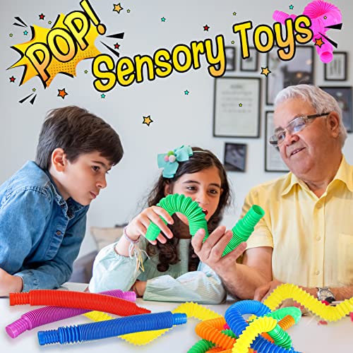 Set Fidget Toys: riceverai 10 pezzi di pop tube in vari colori (ogni pezzo è lungo 15 cm, può essere allungato fino a 50 cm, il diametro del pop tube è di 2 cm, è perfetto da afferrare per i bambini). 10 pezzi di pop tube sono sufficient