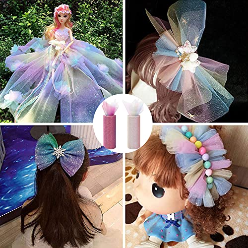 2 Pezzi Tulle Glitter Arcobaleno, Rotoli di Tulle con Glitter, Nastro Tulle Arcobaleno Glitter, Rotoli di bobine di tulle, Rainbow Gradient Glitter Sewing Crafting Fabric, for Wedding, Party Skirt