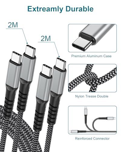 100W Cavo USB C USB C 2M 2 Pezzi, Cavo USB Type-C Ricarica Rapida Cavo USB C Nylon Cavetto USB Cavo Type C to Type C PD 5A Cavo Type C para iPhone 15 Pro Max,iPad Pro,Samsung S23 Ultra/S22/S21/S20