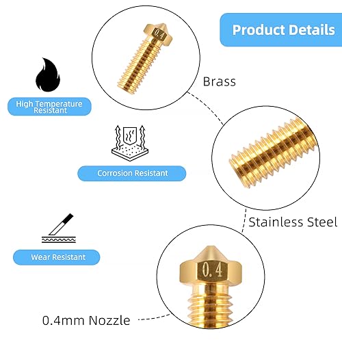 Applicabilità e compatibilità: i nostri ugelli sono adatti per Prusa i3, Anet8, Anycubic i3 Mega ecc., Monoprice Select Mini, V5 V6, compatibile con tutte le stampanti 3D E3D V5 V6 1,75 mm PLA ABS