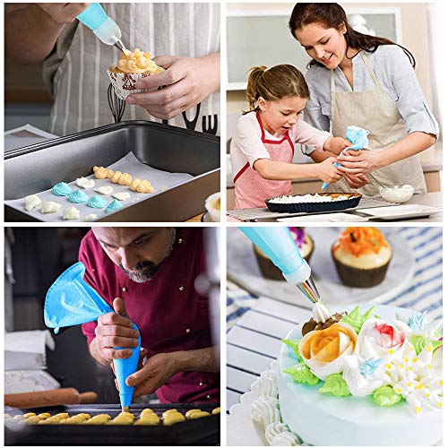 30 Pezzi Set di ugelli a Sacco per Tubi,24 beccucci in acciaio inox, 1 sacche da pasticcere in silicone, 1 Accoppiatori,4 Pirottini in Silicone,per Decorazione Torte, Biscotti, Cupcakes - Blu