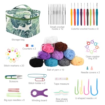 87 Pezzi Kit Per Uncinetto Per Principianti, Kit Per Principianti All'uncinetto, Set Di Aghi Per Uncinetto Con 12 Gomitoli, Aghi Da Cucito In Plastica, Custodia Per Segnapunti, Kit da Cucito Verde