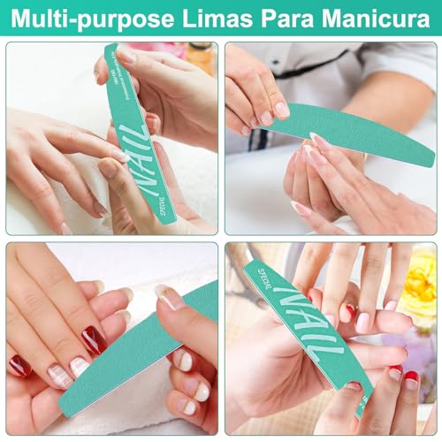 MATERIALI DI QUALITÀ PREMIUM - Le lime per unghie gel sono realizzate con materiali di prima qualità EVC+ tavola di smeriglio. Progettate con forma a semicerchio e doppi lati, queste lime per unghie e buffer belli, robusti e durevoli vi offriranno un'esperienza confortevole nella realizzazione delle unghie.