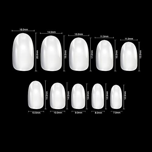 By Vixi 120 pezzi SET PER UNGHIE CORTE OVALI con COLLA LIBERA E LIMA DI PREPARAZIONE, 10 misure - Opaco Estensioni rapide per unghie finte a copertura totale per saloni di bellezza e uso domestico