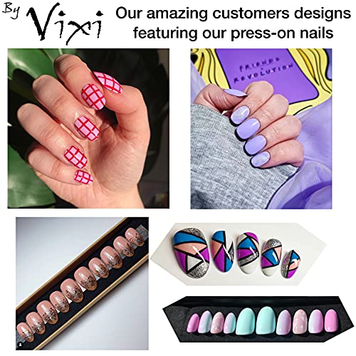 APPLICAZIONE IN POCHI MINUTI - Prepara, incolla e attacca: la perfetta manicure in pochi minuti! Questo set di unghie a pressione By Vixi è dotato di tutto ciò di cui hai bisogno: la lima, per preparare, lucidare e dare forma alle tue unghie naturali e a quelle artificiali, la colla, per una tenuta di lunga durata, e, naturalmente, le eleganti unghie artificiali Opaco Ovali.