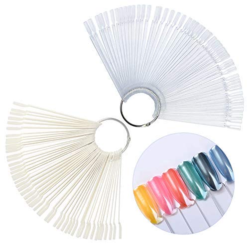 100 Pezzi Unghie finte per Espositore, SANTOO Display Espositore Unghie per Smalto con Supporto Anello Diviso - Forma Ventaglio