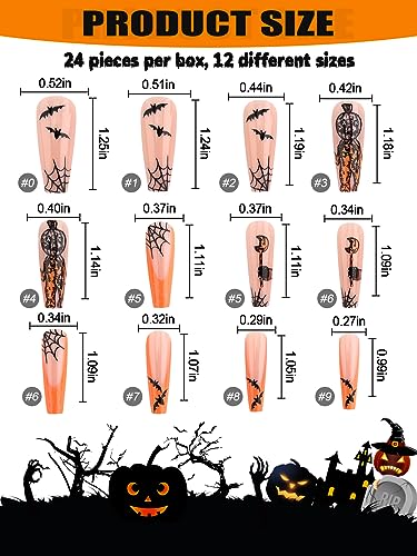 Set unghie di Halloween: riceverai 4 scatole di unghie finte di Halloween con linguette adesive, ogni scatola contiene 24 pezzi, 96 pezzi in totale. Una combinazione di vari stili e dimensioni ti renderà più semplice creare uno stile per unghie di Halloween unico in base alle tue esigenze.