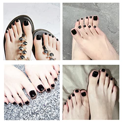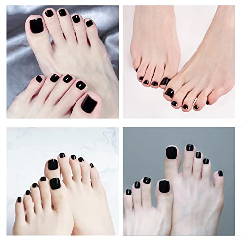 120 Pezzi Unghie Finte, 12 Misure diverse Short false Nails per Piedi, Copertura Completa Artificiali Unghie, Per Signore Donne Ragazze Nail Decorazione(Black)